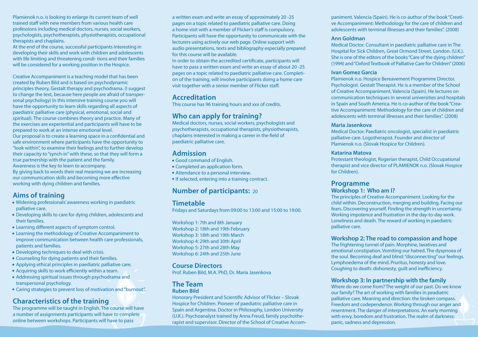 Curso de entrenamiento para profesionales sanitarios que quieren trabajar en Plamienok (Hospice de niños, Bratislava)
